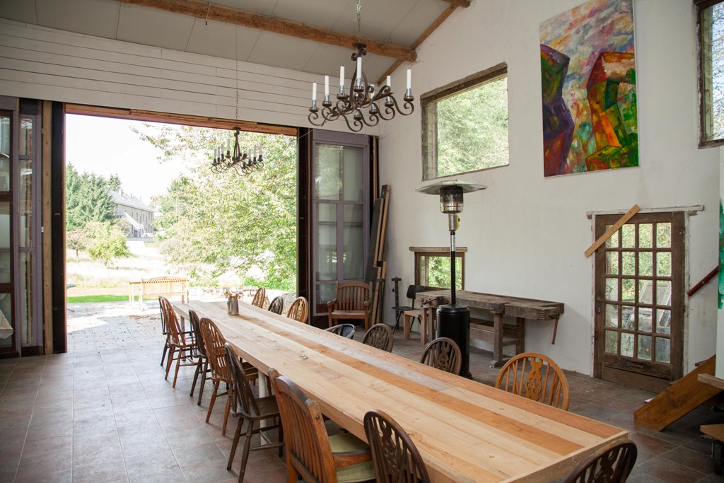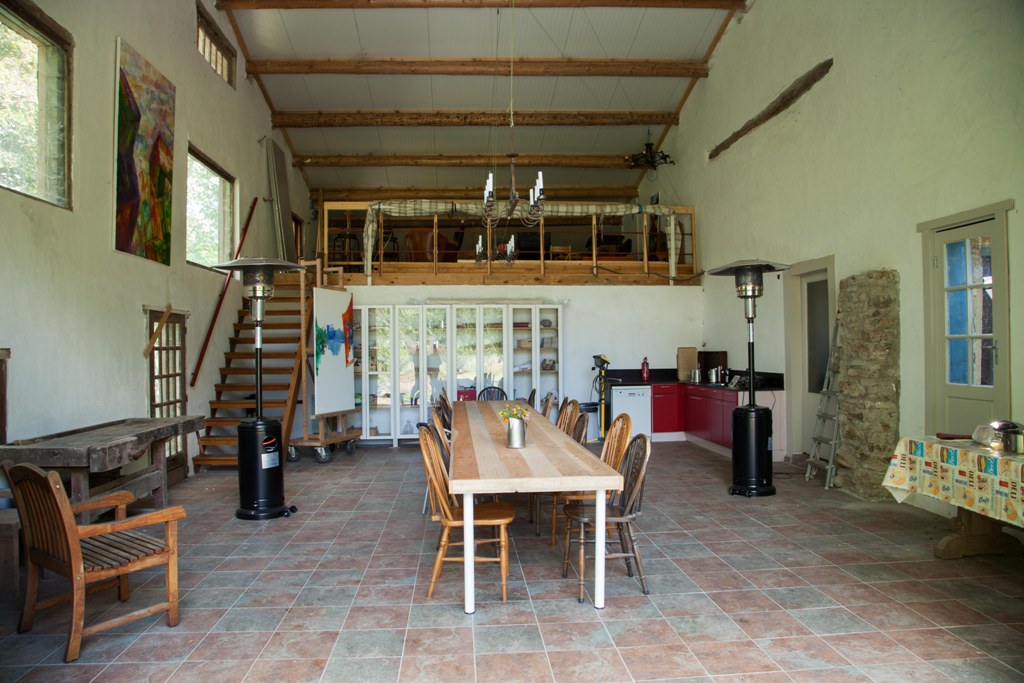 Een groot huis met 17 tweepersoons slaapkamers, een grote keuken, woonkamer, ontbijtkamer, serre, een apart atelier en omgeven door een tuin van bijna een hectare groot. De perfecte plek om met een grote groep een heel weekend lang bord-/kaartspelletjes te spelen.